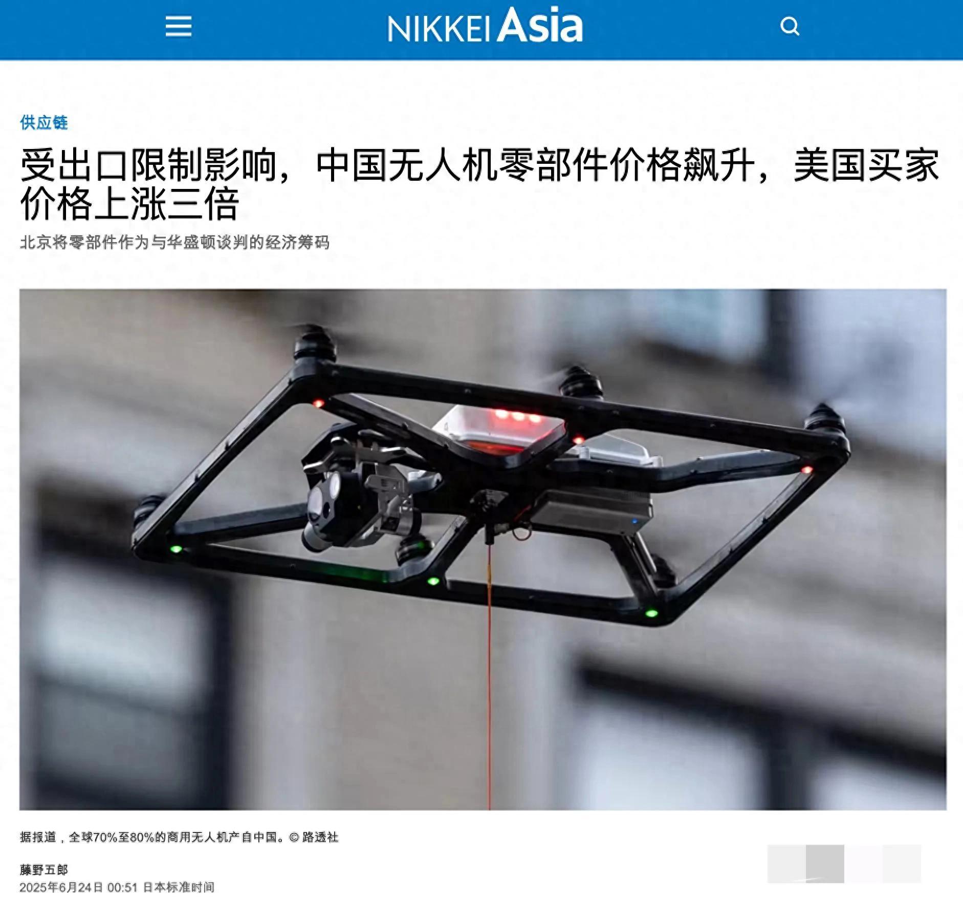 6月24日,《日经亚洲》和《金融时报》几乎同时爆出同一 个消息:中国无人机零部件价格一年内飙涨三倍。