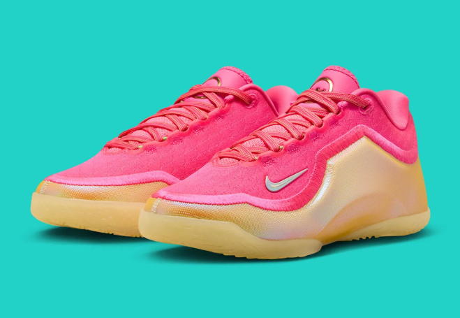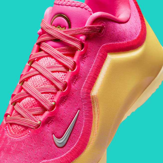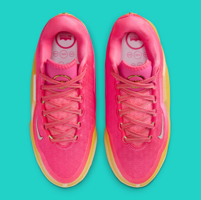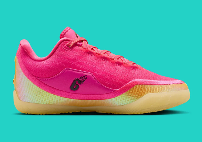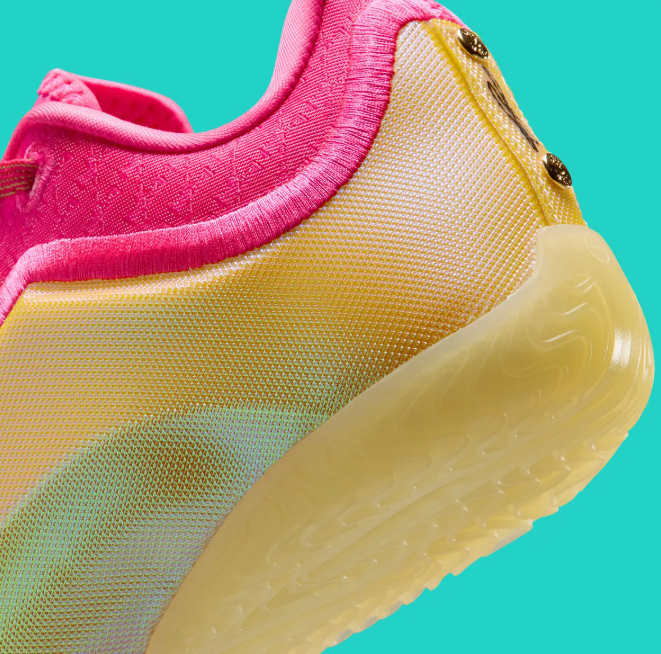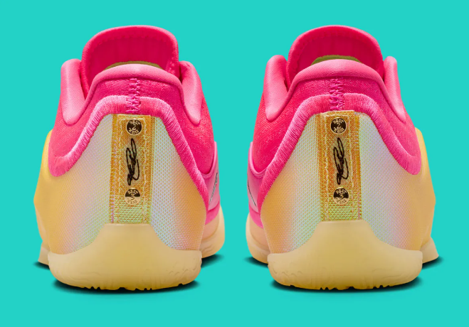 当然,除了背后因素,鞋履色彩也是可圈可点,充满迈阿密热火队风情的粉红色首先映入眼帘,此外鞋履下部金黄色的沙滩色也是与其相辅相成,完美的展现出了南海岸的独特魅力。色彩吸睛感十足,鞋履的个性也是非常张扬,毫无疑问,这绝对适合喜欢亮色元素的鞋迷入手。