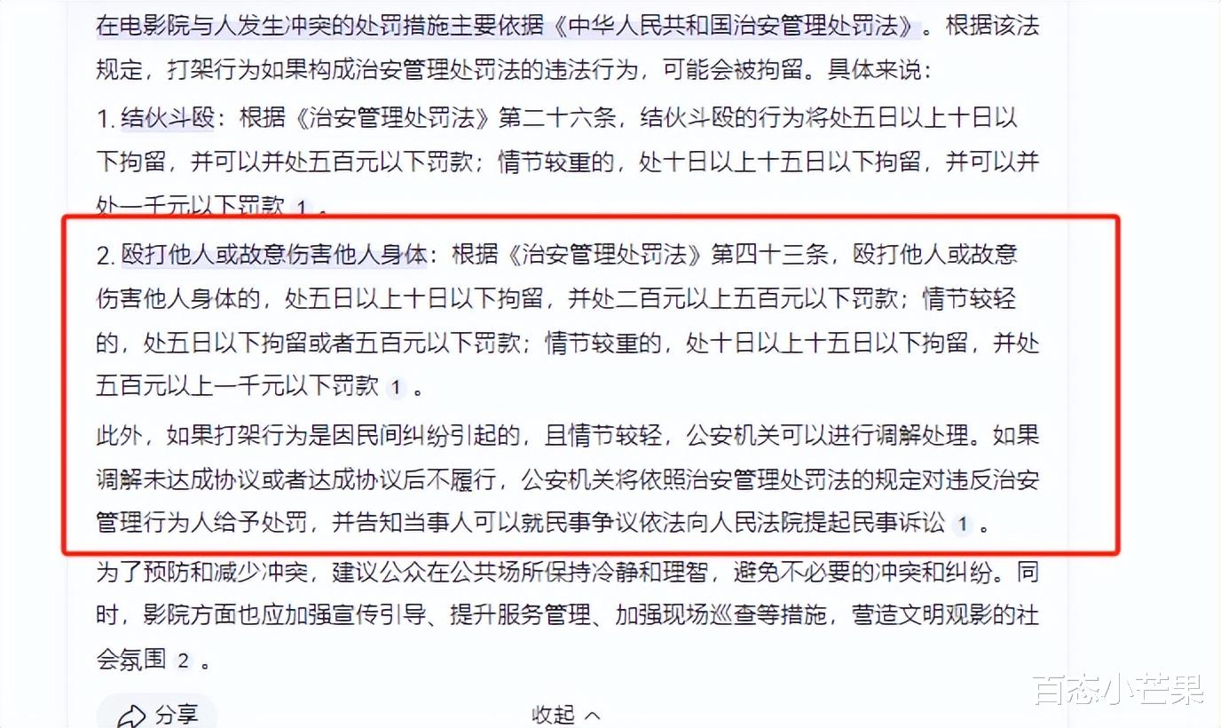 实际上,大妈这样在电影院打扰别人观影体验,并且动手与人发生冲突的行为,已经违反了我国的治安管理法。