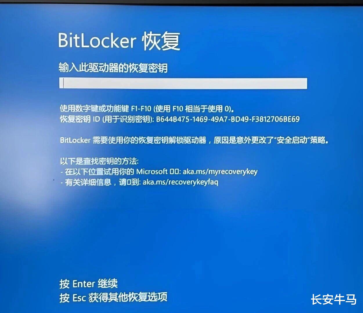 结果:开机直接卡在蓝屏界面,要求输入 48 位恢复密钥。最可怕的是:密钥可能不在你手里!