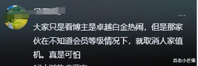 紧接着下边有网友表示,被撕的这位博主可不是一般人,他的卓越终身白金卡,比常见的白金,卓越白金还高两个等级,是全国都没几个的超高级用户啊。他这样级别的,居然也会受得这样的憋屈气。