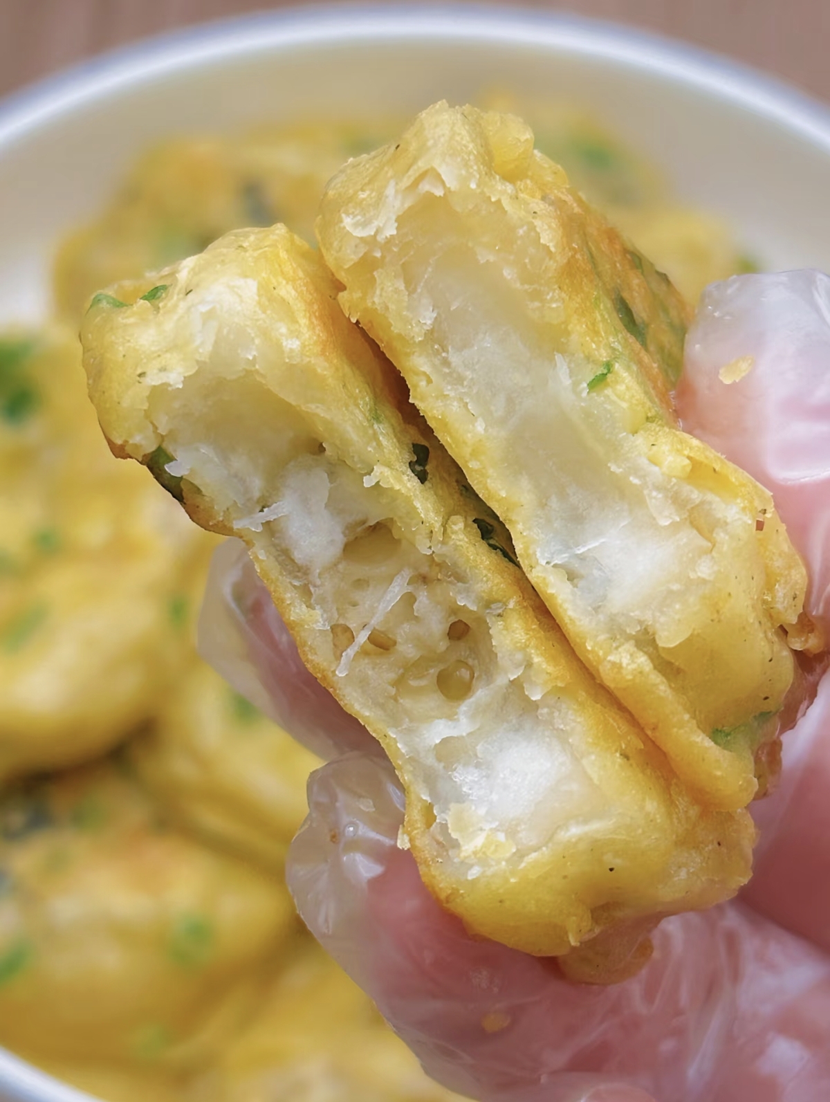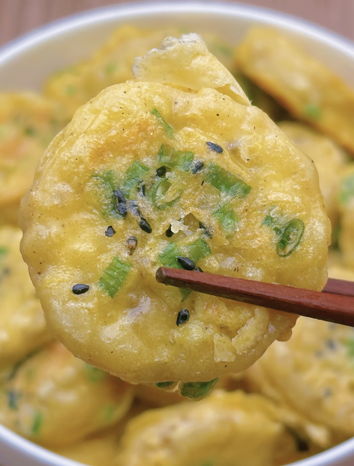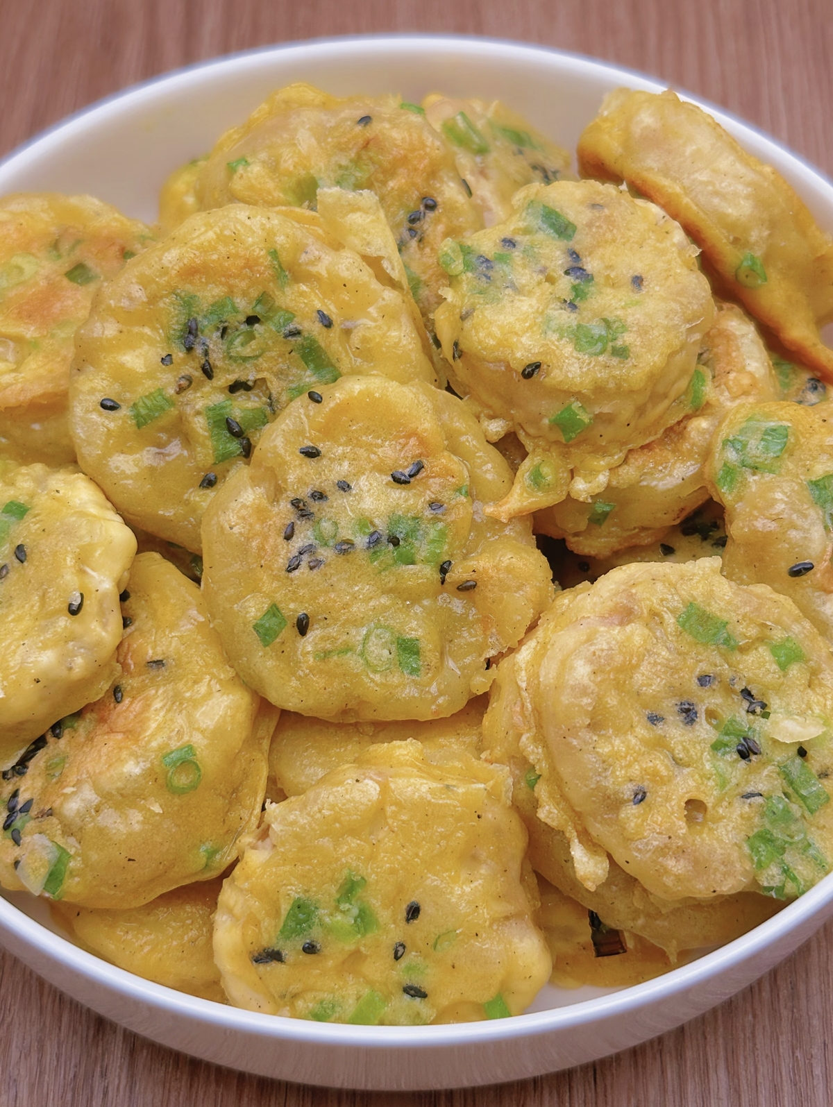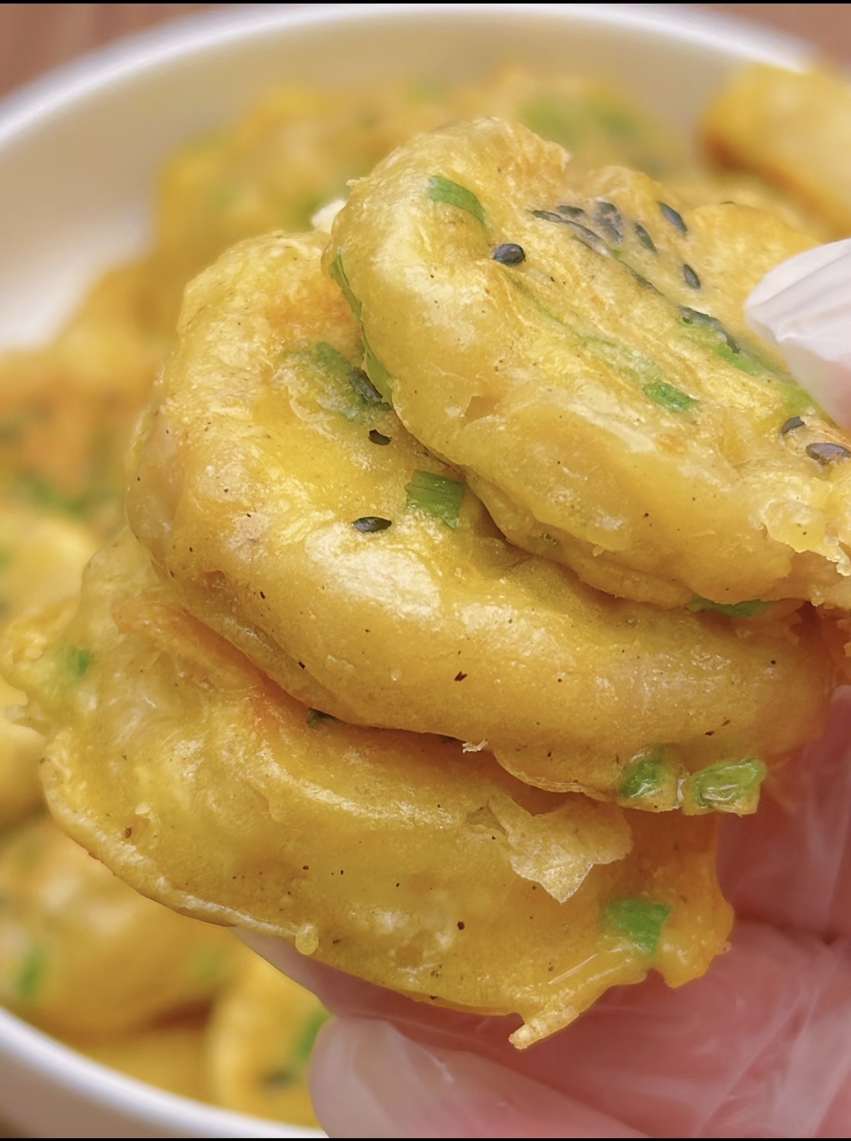 刚出锅的茄子鸡蛋饼,热气腾腾,香气扑鼻。金黄的色泽让人食欲大增,咬上一口,外皮酥脆,内里软嫩,茄子的清香与鸡蛋的醇厚完美融合,再加上面粉的麦香和葱花的点缀,每一口都是满满的幸福感。无论是搭配一碗热粥,还是一杯牛奶,都能让早餐变得丰盛而满足。