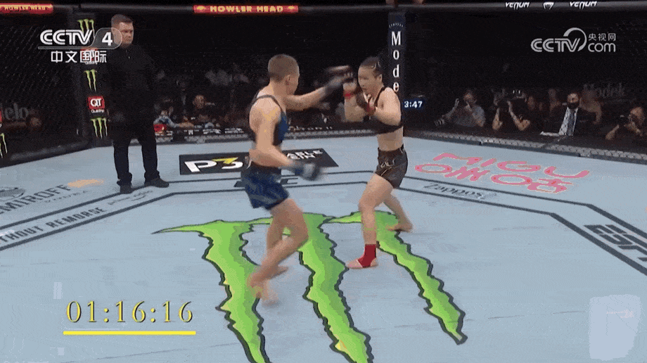 解说员大喊:“Zhang Weili makes history!(张伟丽创造了历史!)”全场上万名观众瞬间沸腾。