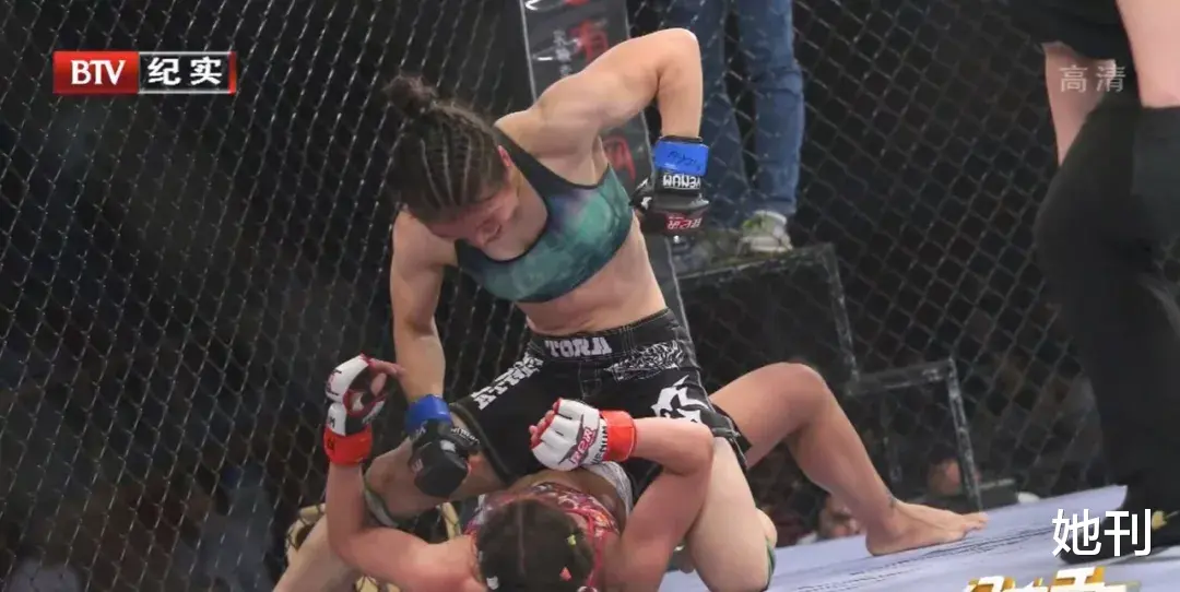 张伟丽在昆仑决中的地面缠斗。图源:《纪实天下》