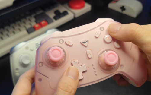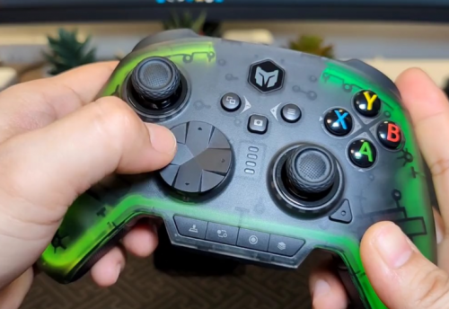 它的按键配置属于同价位里比较实在的那种。下沉式十字键在格斗类游戏里输入更稳定,不容易误触;扳机键程做到大约 8mm,触发快、回弹清晰,像赛车、动作类游戏操作起来更顺。双注塑摇杆耐磨度高,摩擦感适中,微操时也不会飘。