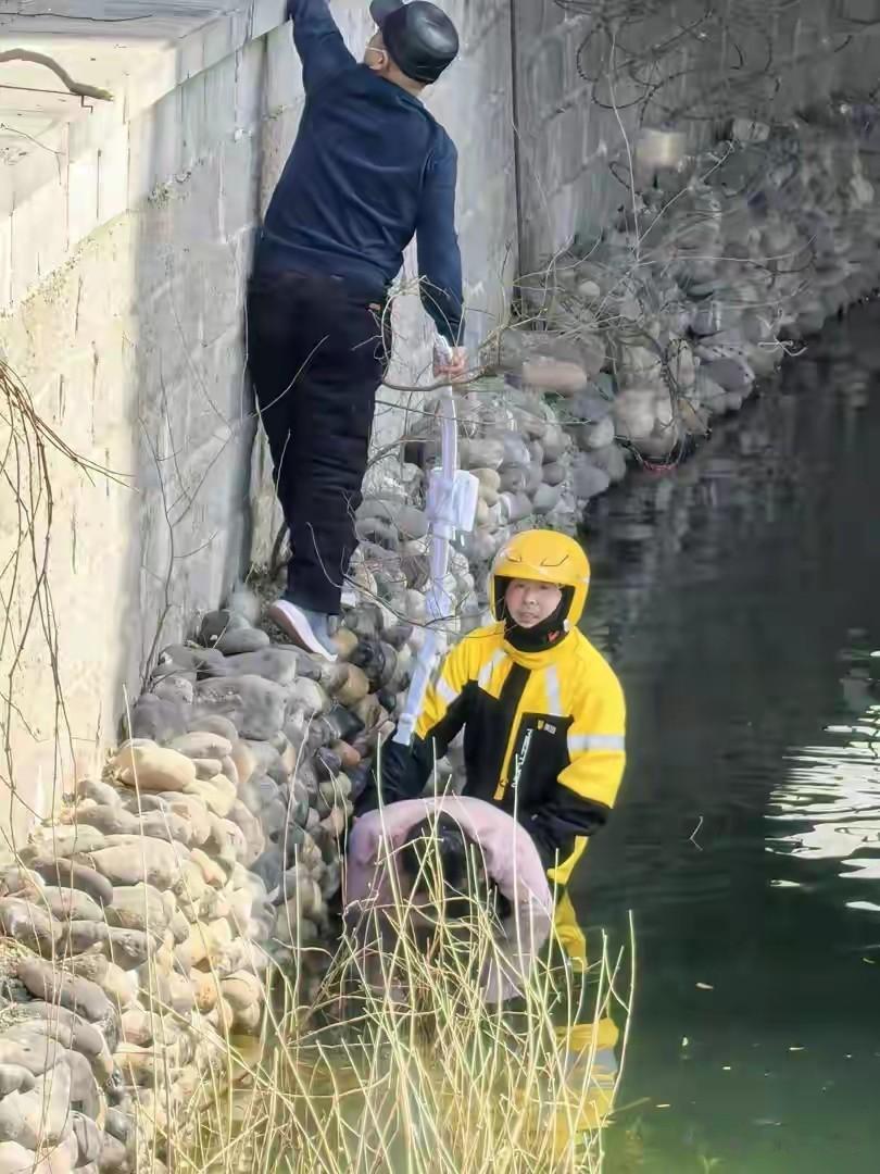 因为水面离河堤很高,岸上的几人和张蒙蒙尝试了好几次,均未能成功将女子拉上岸,为了防止女子再次呛水,只能在冰冷的河水中,托住落水女子,等待专业的营救人员赶来。
