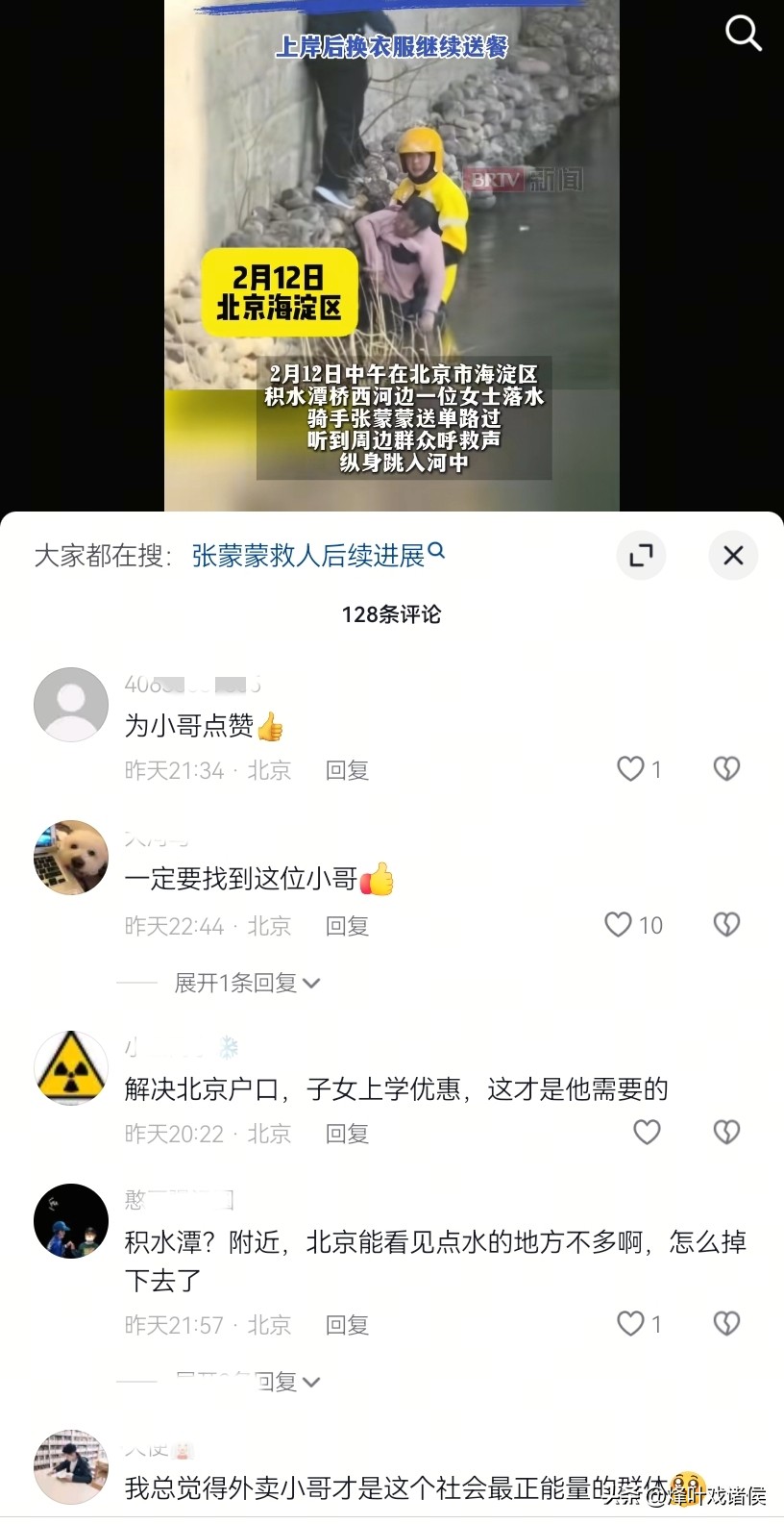 救人视频在网上传播后,网友们纷纷留言,一定要找到这位救人英雄。