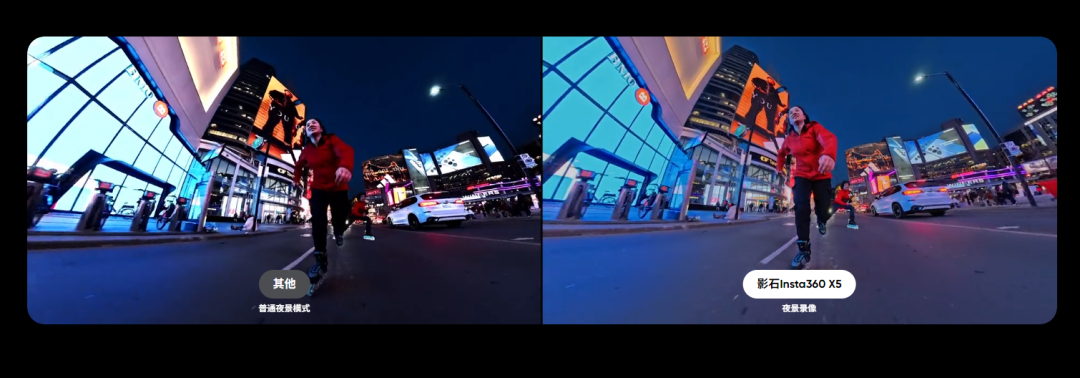 影石Insta360 X5的全新夜景录像模式通过三大核心技术突破,彻底改变了全景相机在暗光环境下的拍摄表现。其搭载的第四代AI智能降噪算法能够精准识别并消除不同频段的画面噪点,相比传统降噪技术保留更多真实细节,即使在ISO 3200的高感光度下也能呈现干净通透的夜景画面。