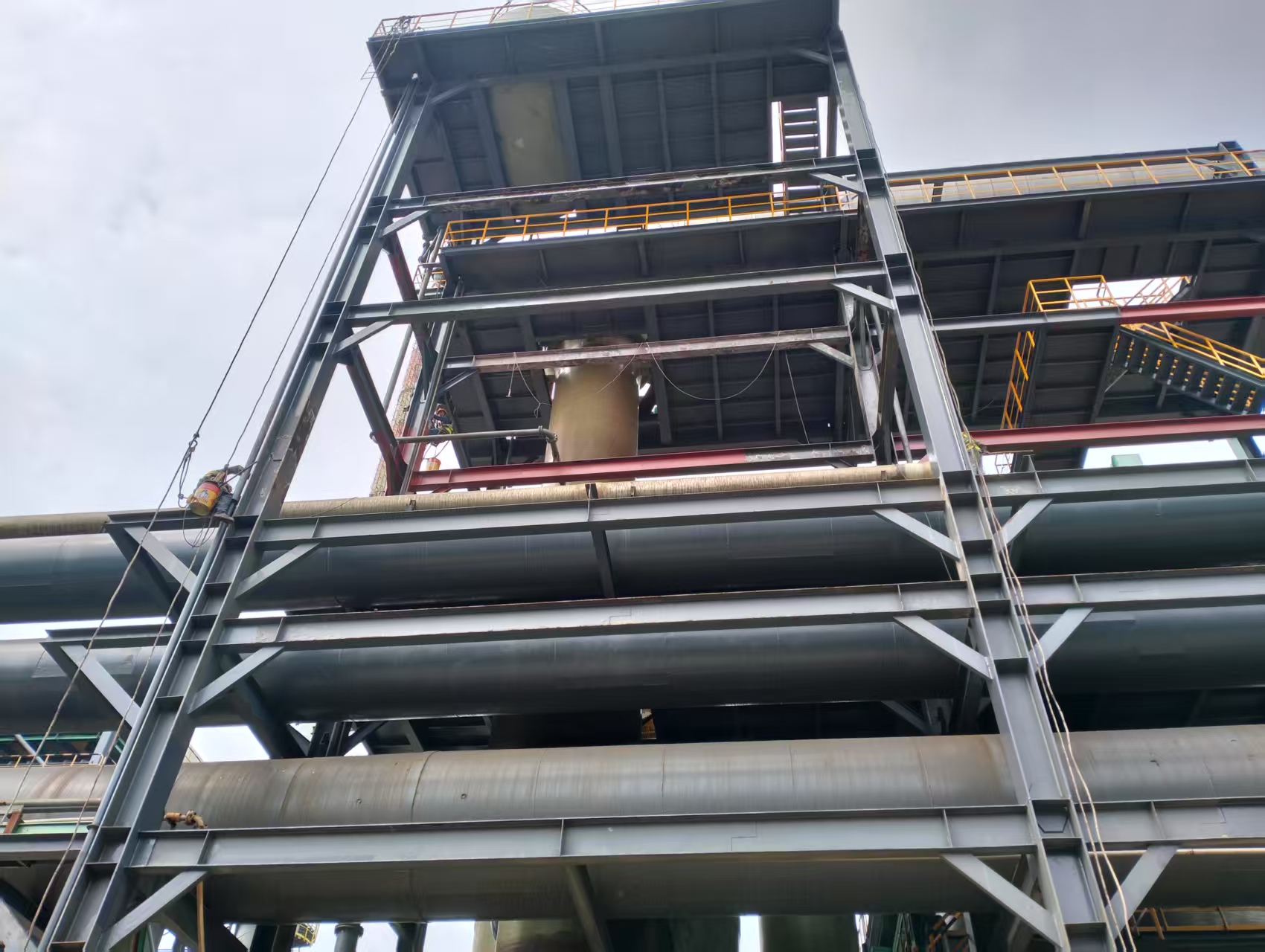 油漆采用环氧富锌底漆 + 云铁中间漆 + 丙烯酸聚氨酯面漆体系,材料具备合格证、检测报告,配色统一。