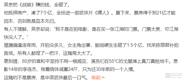 还记得,吴京在《镖人》预告期,就语气沉沉的说出了这番话。