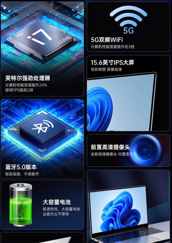 "2026款英特尔+酷睿i7"——注意是"酷睿i7级",不是"酷睿i7"。这个"级"字值千金,可能是十年前的i7-2670QM(双核四线程,现在连微信多开都喘),也可能是赛扬N5095这种"披着i7外衣的省电U"。真正的i7-1360P单核跑分是它的3倍,但商家不会告诉你具体型号,问客服就是"最新款高性能处理器"。