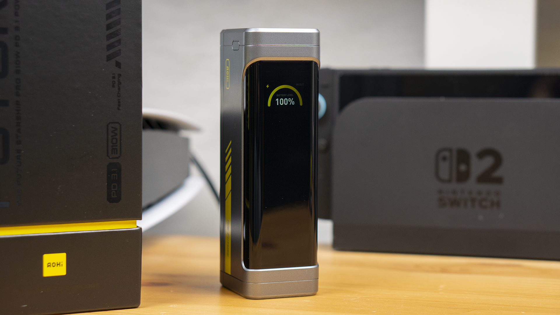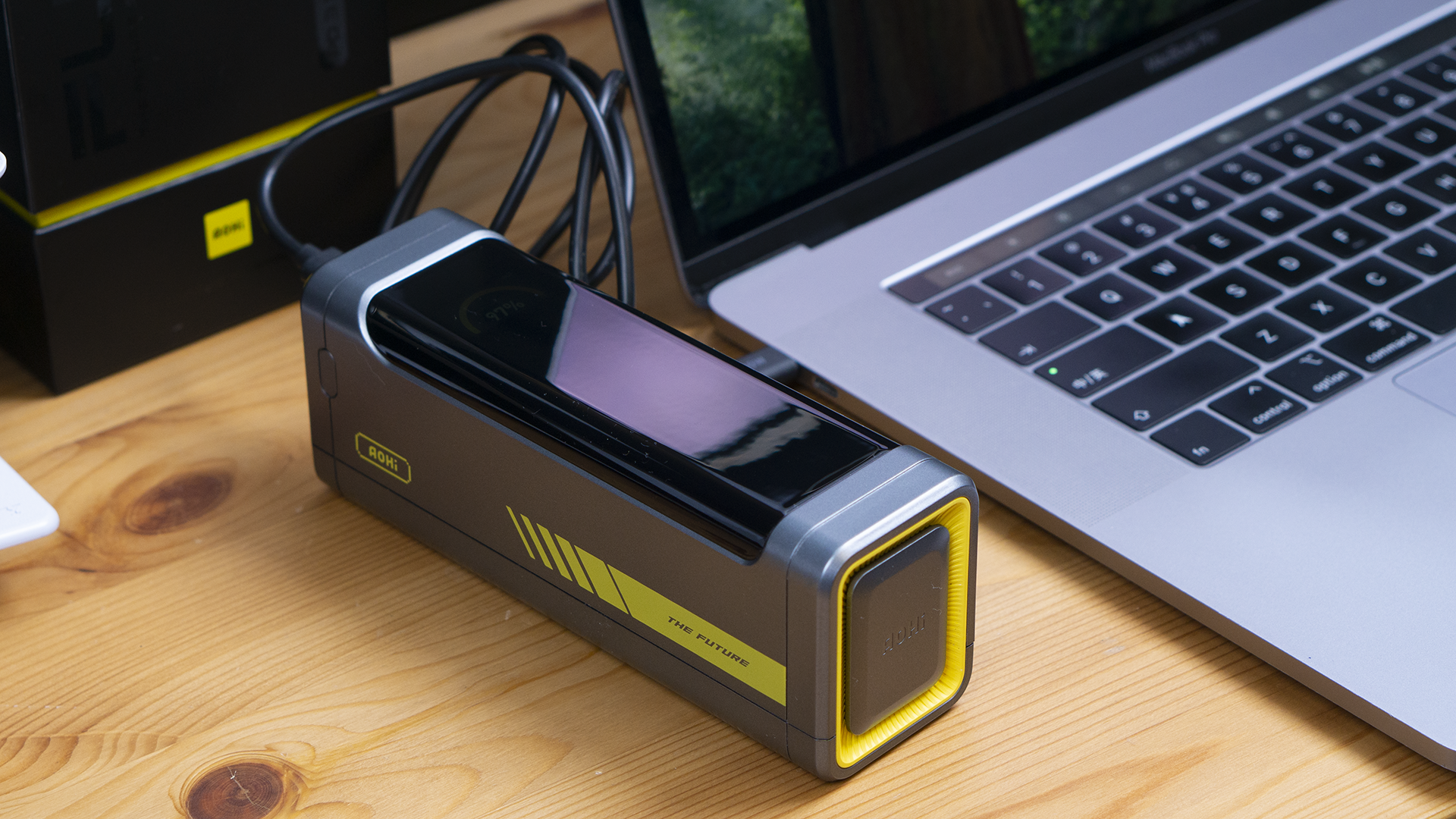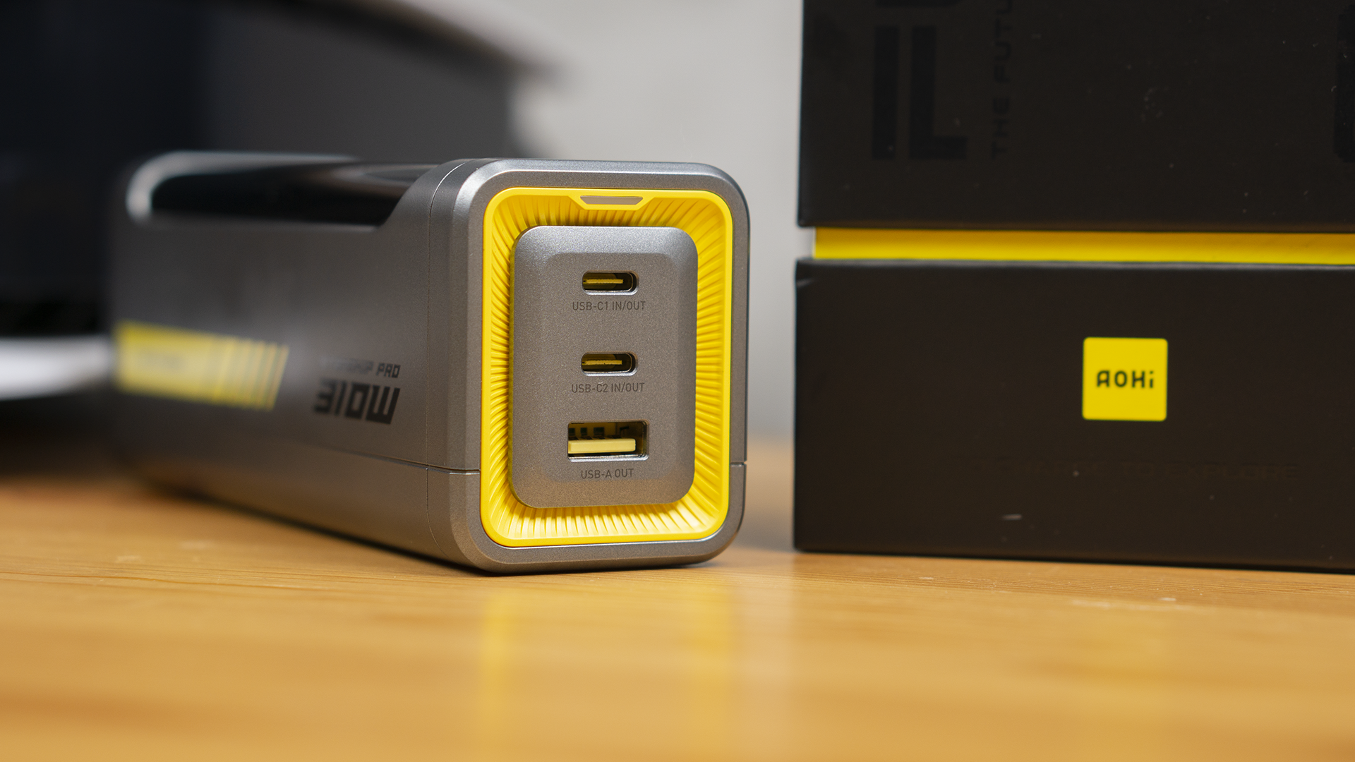 这是 Aohi奥海星舰 Pro 移动电源的外箱,依旧是家族风格的黑黄配色。