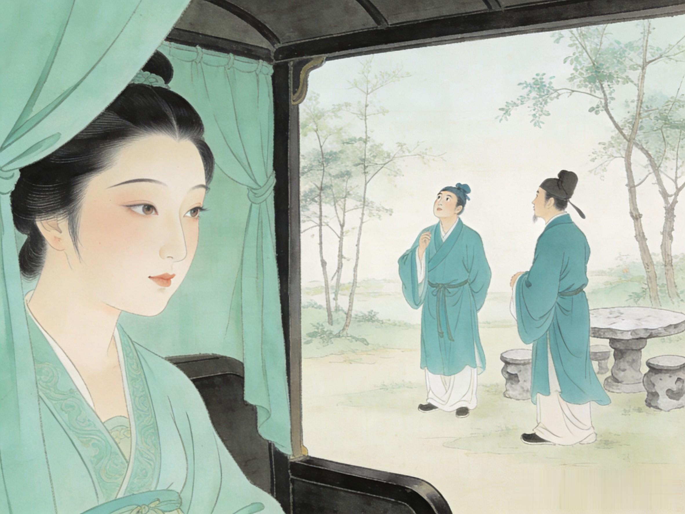 滕生当场便痴了。他不由自主地跟上去,跟着那辆车,跟着那下车的身影,跟着那一袭青罗裙。他的眼睛直勾勾的,像被什么勾去了魂魄。