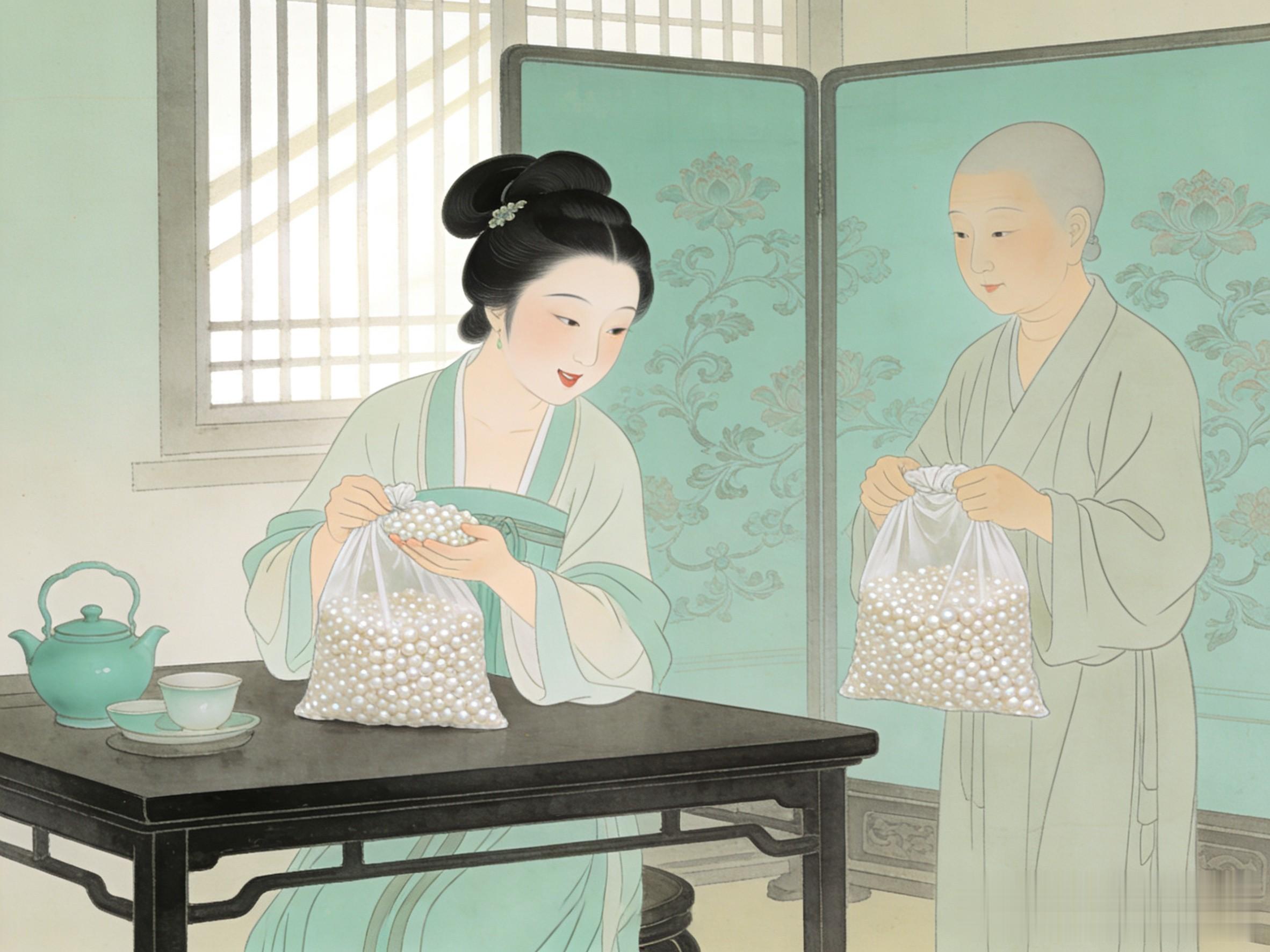 不几日,慧澄提了两袋上等珍珠,来到狄府。