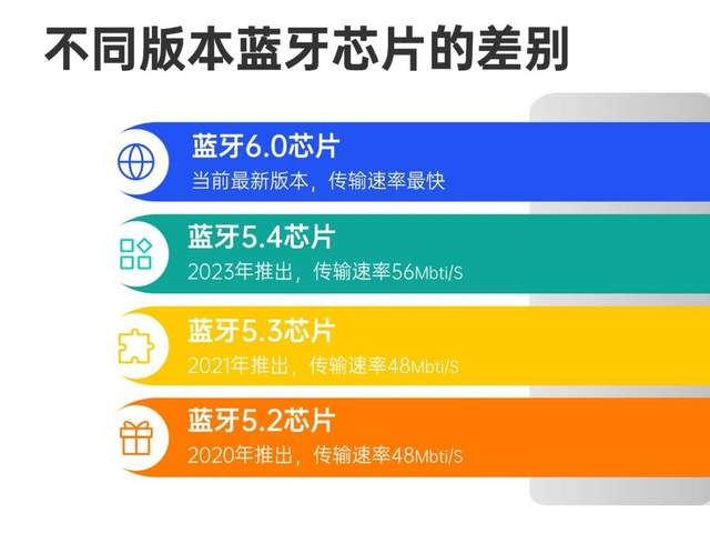 接着是蓝牙版本,这直接影响连接的稳定性。现在基本都是配备蓝牙 5.3 及以上的,但是最好选择6.0版本的芯片,连接更稳, 连接速度更快。