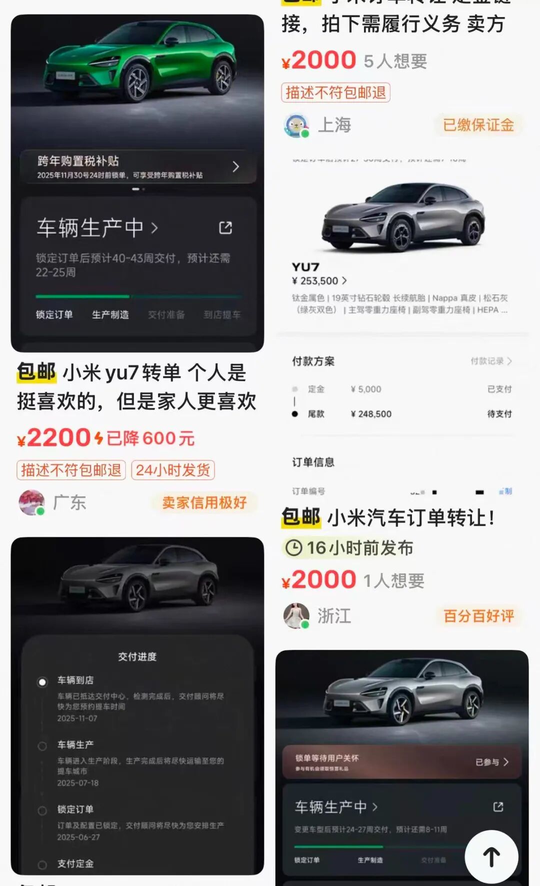 闲鱼上,原本一机难求的订单转售也彻底降温。曾经有人加价两万元抢购订单,如今,订单回收价甚至不到2000元,让早期支付5000元订金的人不挣反亏近3000元。