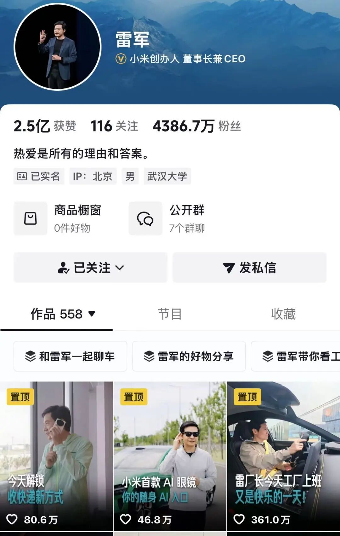 在小米造车进程中,雷军的个人IP为品牌带来了巨大流量红利,仅抖音账号最高峰时积累超过4570万粉丝。但现在,这位“全民偶像”正经历前所未有的信任危机,目前其抖音账号掉粉近200万,评论区也从一片捧声变成贬低声不断。