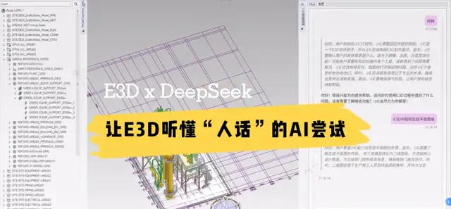 在此基础上,今年AVEVA与昆仑工程有限公司携手,将AVEVA E3D Design平台与中国本土大语言模型DeepSeek进行深度集成,共同开发E3D Design辅助工具AI助手的原型。这一合作采用完全本地化部署,保证数据安全可控,为AI在工程软件领域的创新应用开辟了新的落地路径,也标志着工业设计智能化正向着更高阶的认知辅助与生成式交互迈进。