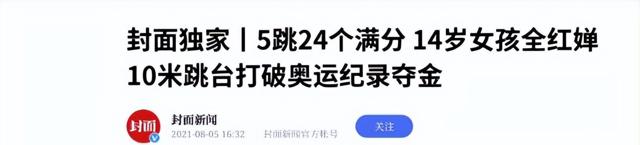 封面新闻 ——2021-08-05——14岁女孩全红婵10米跳台打破奥运记录夺金 还有高难度“大招”没使出来