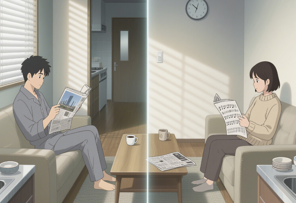 这场冷战,旷日持久,精准而冷酷地切割着我们的生活空间。家成了最熟悉的战场,无声的硝烟弥漫在每一寸空气里。厨房的使用时间被严格错开,我七点做完早餐离开,她八点才出现。客厅的沙发有了明确的楚河汉界,我看我的建筑期刊,她翻她的乐谱,中间空出的位置足够再坐两个人,却弥漫着令人窒息的真空。