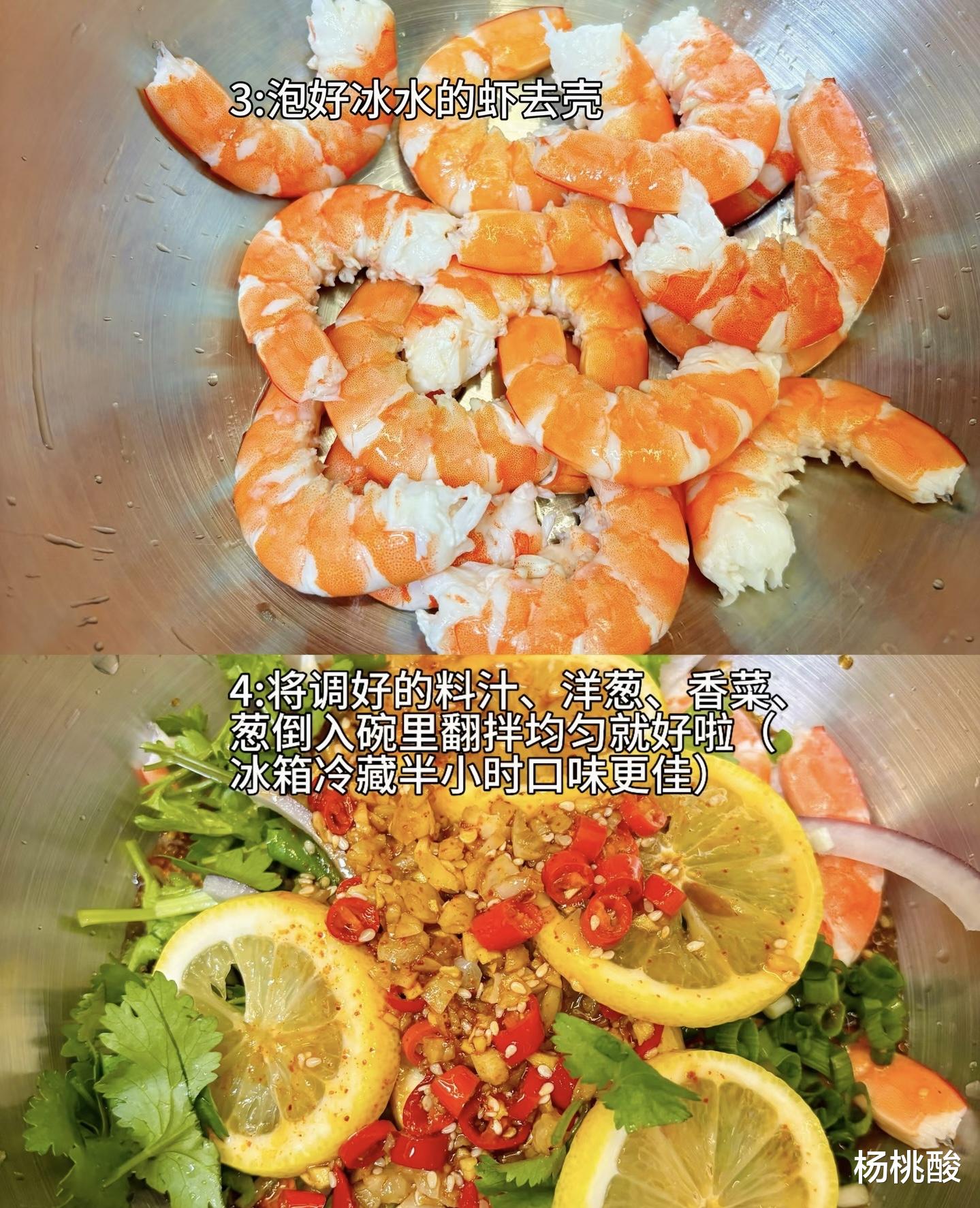 后,盖上保鲜膜,放入冰箱冷藏腌制。在低温环境中,虾肉的鲜味与酱汁的酸辣相互渗透,柠檬的清香也悄然融入其中。