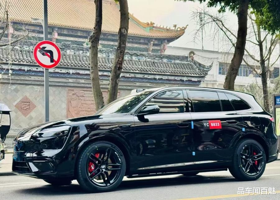 而在车身位置,由于问界M6还会提供运动套件版本车型可选,这让其车身整体除了同样具备相对流畅且动感的身形姿态以外;还会在运动套件加持下,获得“黑武士”涂装效果以及内置有大尺寸红色刹车卡钳的熏黑五芒星样式轮毂,使其侧颜甚至都能营造出略胜于保时捷卡宴的性能风范与动态美感。