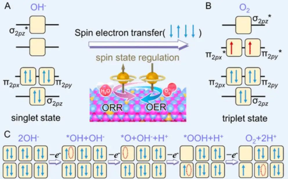 机理上,这是由于eg轨道属于金属–氧键的反键轨道,其占据程度直接影响金属对氧中间体的键合强度:eg电子过少会使反键轨道空置,金属与氧键过强,产物难以脱附;而eg电子过多会削弱金属–氧键合,活化吸附物变得困难。