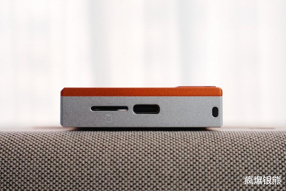 接口分别被设计在了左右两侧,左侧是type-c充电口和TF卡安装位,type-c口可用来传输音乐文件,也能连接电脑当作外接解码器,TF卡支持256G最大容量扩展,放再多歌曲也没问题的哈。