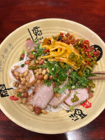 来自桂林的温柔风味,细滑的米粉配上浓郁的骨汤,加上酸豆角、花生米、腐竹,鲜香清爽,不油不腻,可选清汤或微辣,一口尝到桂林的山水滋味,治愈又解腻。
