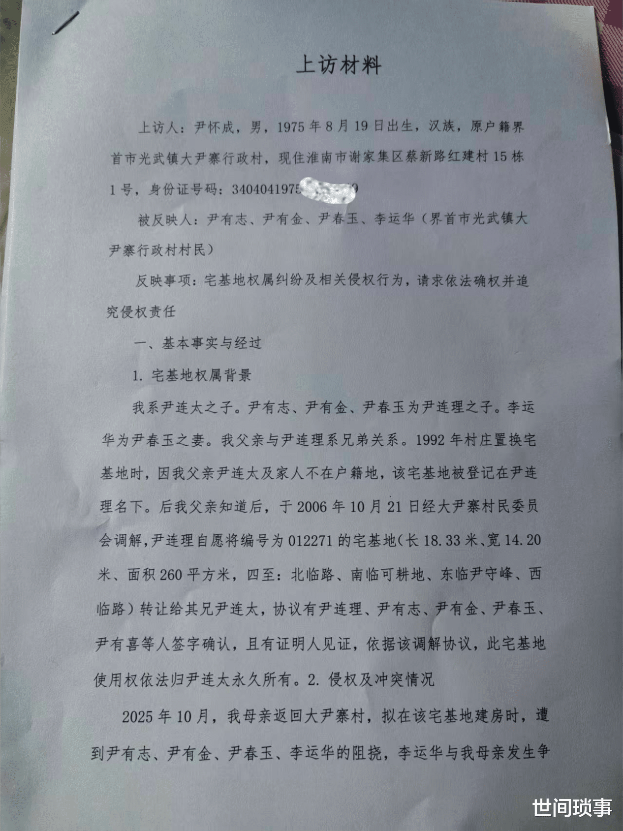 安徽省界首市光武镇大尹寨村一宗跨越三十二年的宅基地纠纷,于2025年10月酿成致命悲剧。七旬老人在返乡处理宅基地过程中遭遇阻挠,冲突中不幸身亡。材料显示,这起事件表面是亲属反目,实则源于尹连理家族背弃父辈承诺、侵占他人财产,更暴露出基层政府在宅基地审批、权属登记、信访处置等环节的长期失职。