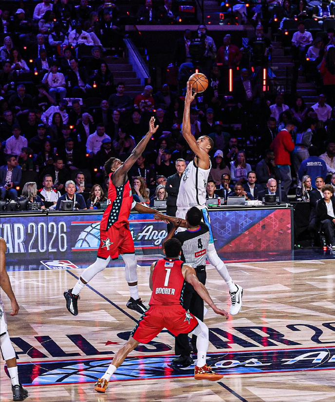 由于字母哥和亚历山大没打,东契奇和约基奇也双双划水,世界队就只有靠文班亚马一个人撑起场面了。文班亚马的个人表现确实很出色,而且一开始就打得非常认真。首场比赛对阵新星队,文班亚马出战10分钟,投篮5中4,三分2中2,罚球4中4,砍下14分6篮板3盖帽,可惜世界队还是在加时中以35-37惜败给新星队。