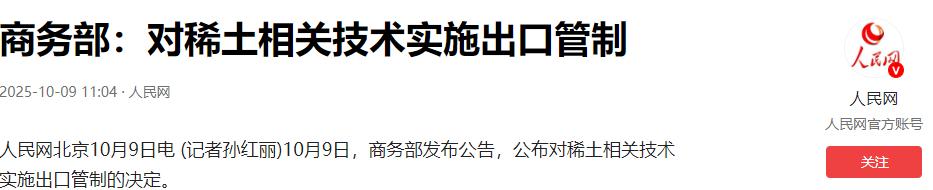 10月9号,商务部直接发了公告:凡是涉及AI芯片、自动识别系统、军用无人机控制模块等产品,只要含有中国稀土元素或技术,就需单独申报审批。