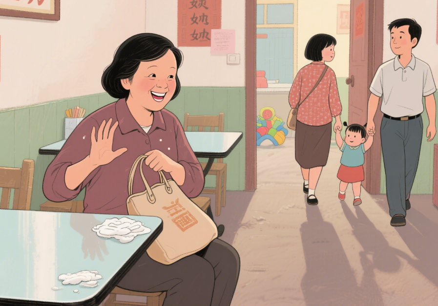 一天傍晚,我刚收摊,满身油烟味地赶到赵阿婆家接囡囡。囡囡正发着低烧,小脸通红,蔫蔫地趴在我怀里。