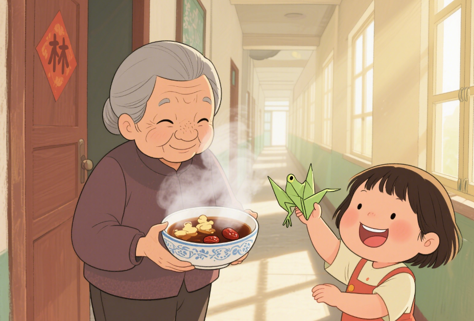 有了安稳的落脚点,如同久旱的禾苗得到了雨露滋养。囡囡的小脸渐渐红润起来,咳嗽和疹子也少了。林奶奶话依旧不多,但会在天气转凉时,默默在我房门口放上一碗热腾腾的姜枣茶;会在囡囡咿呀学语时,用那双布满皱纹却异常灵巧的手,给她折一只活灵活现的纸青蛙。
