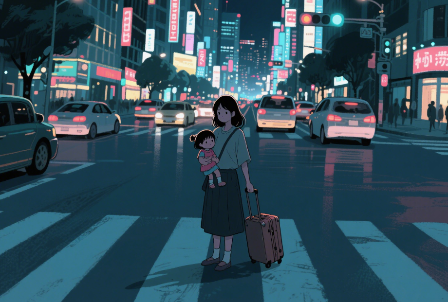 城市华灯初上,车流如织,霓虹闪烁,编织着一张繁华的网。我抱着囡囡,拖着那个小小的、轻飘飘的行李箱,茫然地站在十字路口。巨大的空虚感和恐慌像潮水般漫上来,几乎将我溺毙。