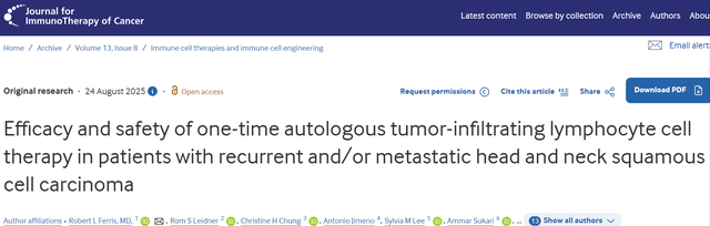 这项研究证明了TIL细胞疗法在复发/转移性头颈部鳞状细胞癌患者中的可行性。