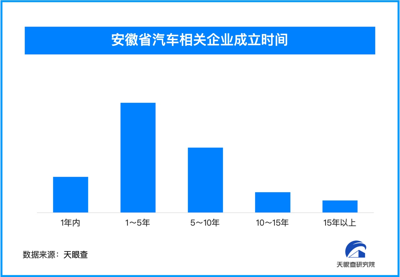 天眼查数据显示,安徽省现存汽车相关企业超47万家。从成立时间看,安徽省汽车相关企业集中成立于1至5年之间,占比超40%。新能源汽车产业正持续领跑绿色智造新赛道,成为支撑中国经济稳健增长的核心引擎之一。