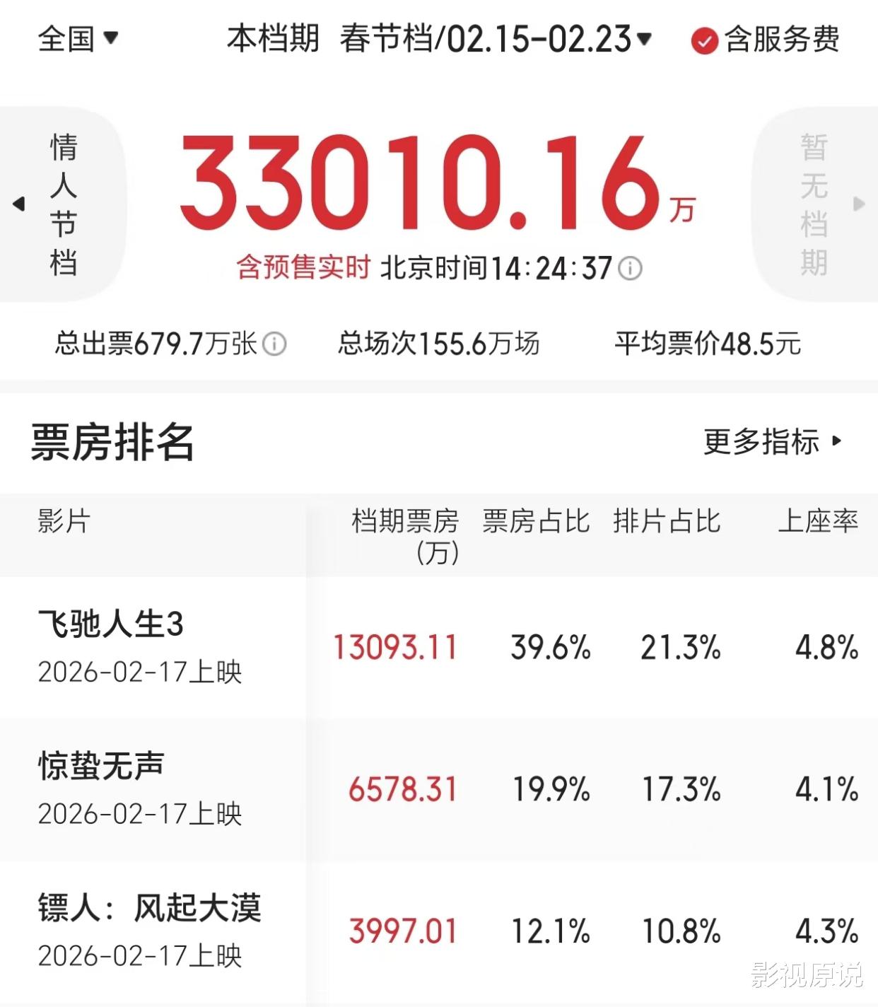 因此,《飞驰人生3》基本已经锁定了今年春节档的冠军。