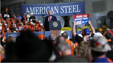 美国总统特朗普(Donald Trump,又译川普)5月30日(周五)在宾夕法尼亚州的一场集会中表示,他计划将从外国进口的钢铁关税从25%提高至50%,认为此举将进一步向全球的钢铁生产商施加压力,并保障美国的钢铁工业。