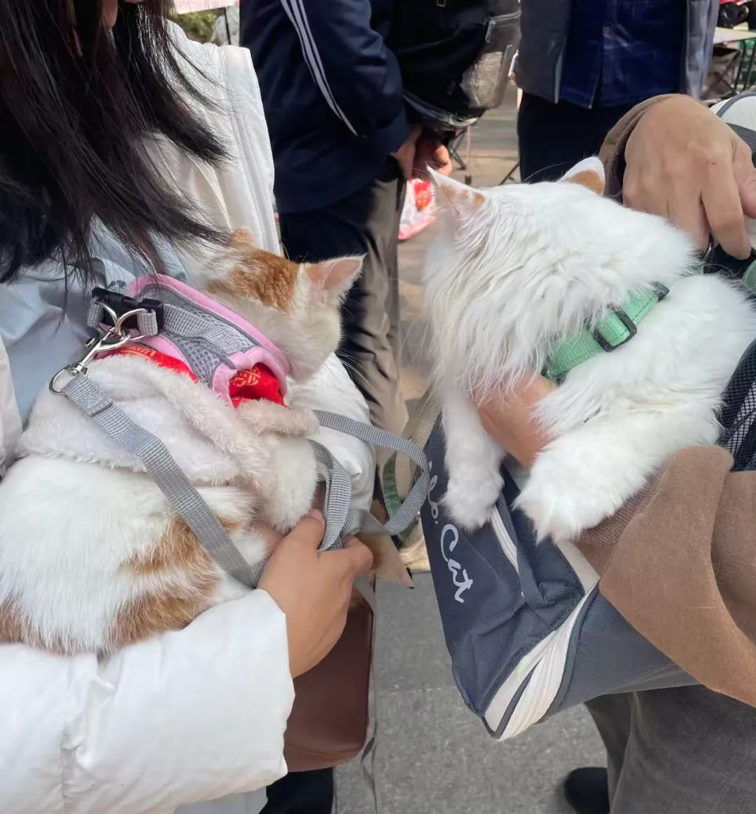 最后,在离开相亲角时,楼主看到了有趣的一幕,两个爱猫之人,笑着说:人还没找到对象,猫倒看对眼了。