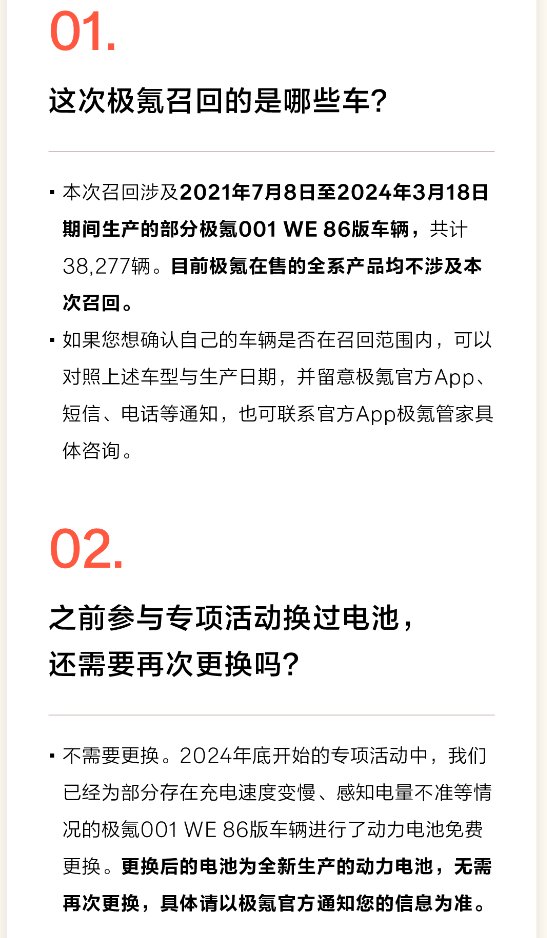 去年9月,小鹏召回部分小鹏P7+汽车超过4万辆;10月,理想宣布召回MEGA车型超1万辆;11月,比亚迪更是召回超8万辆秦PLUS DM-i车型。而在最近,极氪又主动宣布召回超1万辆2021年7月-2024年3月生产的极氪001WE 86车型。如此大规模的新能源车企召回事件,在几年前几乎是很难看到的。是车企的技术退步了吗?显然不是。