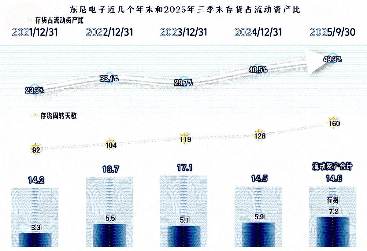存货的规模仅有2023年末小幅下降,之后继续增长,2025年三季度末的规模、占流动资产比和周转天数都创下了新高。就算有新项目建成投产,其存货管理方面的问题仍然需要引起重视。原因是,我们在前面看到,东尼电子已经连续近四年计提大额“存货跌价损失”,这方面对业绩的影响并不算小。