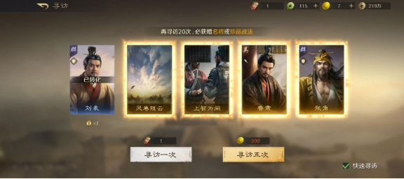 抽卡方面,《三国:谋定天下》的橙卡概率是8%,远高于其他SLG游戏的5 - 6%,而且保底次数是20抽,远低于其他SLG的30 - 40抽保底。游戏不会锁定某个武将或者战法不给玩家获得,解锁武将战法槽和韬略也不需要消耗同名卡,仅消耗免费的铜币资源,大幅减少了玩家的氪金需求。登录游戏前七天,玩家还能免费获得125次抽卡券、2480黄金和多个橙色武将及战法。
