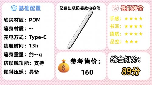 【解读】:对于追求书写流畅度的用户来说,选择一款高灵敏度的电容笔,特别是POM材质笔尖,能够大幅减少延迟,保证书写流畅。而对于精细绘图和手写需求的用户,支持高压感和精准响应的电容笔显然是更好的选择。