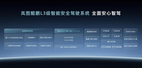 岚图鲲鹏L3级智能安全驾驶系统也不简单,在智驾安全上不断突破,识别更安全,智驾安全带宽更高。15cm的小物体,能在100m外识别;AEB刹停速度能达到160km/h。它用超700线数的激光雷达、超1000TOPS的双旗舰芯片和最新一代的数智融合平台,让感知、算力和决策能力都达到顶尖水平,不断拉升安全上限,让咱智驾更安全。