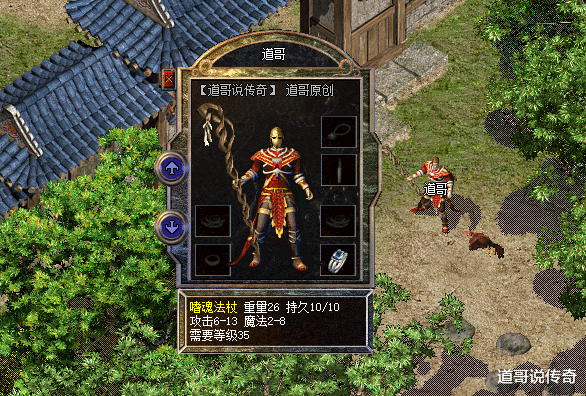 在传奇复古版本中,嗜魂法杖是法师职业的最强神兵,如上图所示,它自带2-8的魔法值傲视群雄。而且从外观搭配来看,法师职业比较适合的魔杖和骨玉权杖都没有嗜魂法杖这么契合。老道还有个不解就是嗜魂法杖顶端绑着一段白布或者绳子作何用?难道是偶尔客串棒棒?