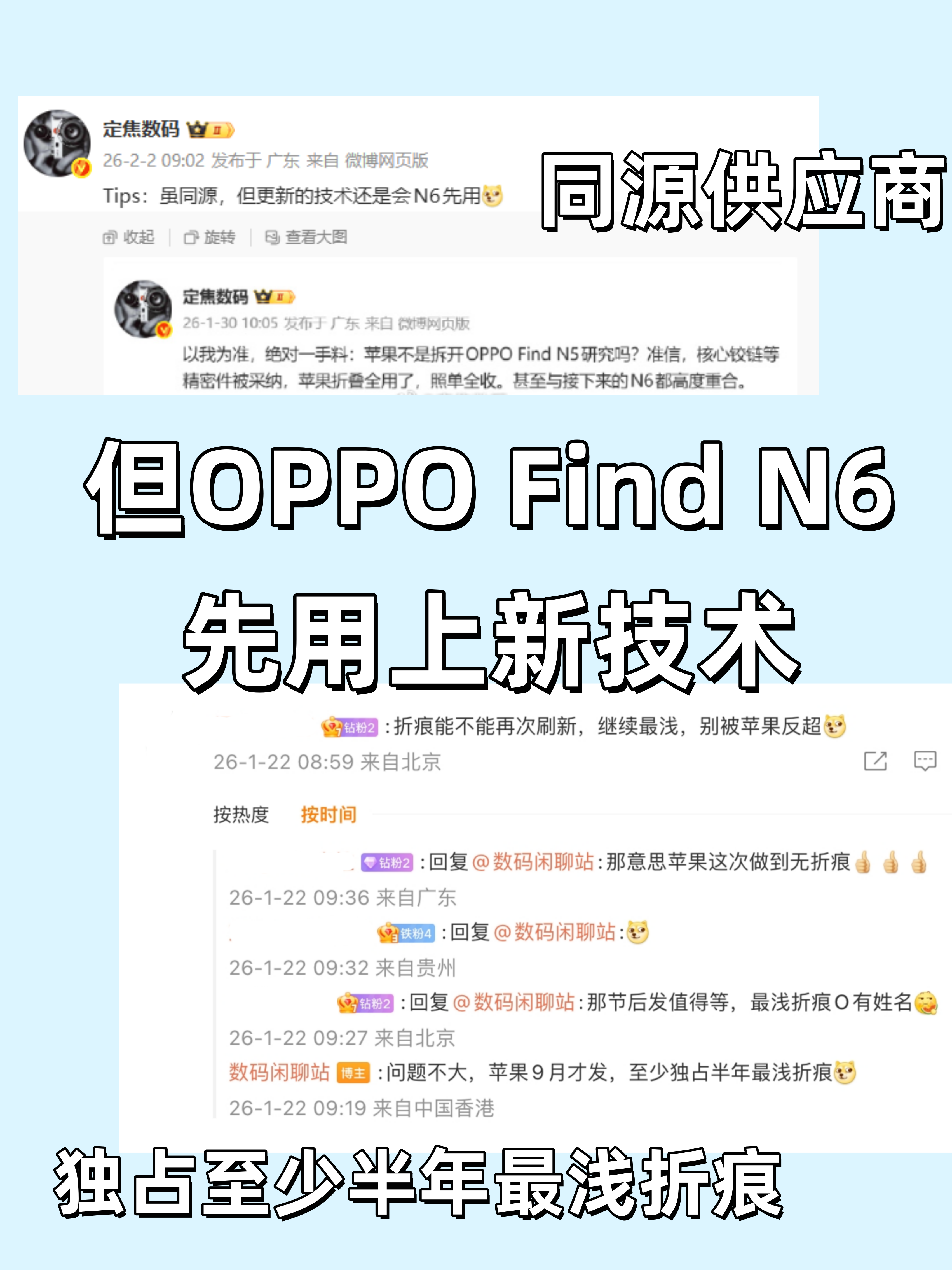之所以这么说,是因为iPhone Fold比我想象的要拉胯多了,毕竟我之前等苹果出折叠屏,为的就是想要一些有别于安卓机的体验,但现在告诉我苹果学不会OPPO Find N5的屏幕平整度,干脆应用了OPPO Find N6的同源供应商,那我追求的差异化体验不就没有了?更何况就是有新技术比如黑绷带玻璃、液态金属铰链等等,肯定也是年后就发布的OPPO Find N6先用上。