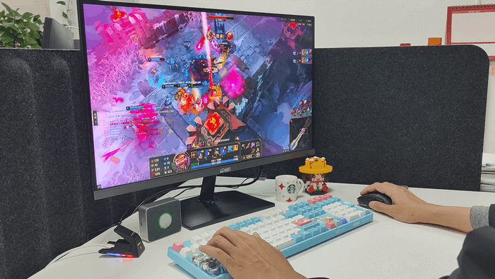 而且它还有 1ms GTG 快速响应时间,在激烈的战斗中,画面始终保持清晰锐利,就算是高速移动视角,物体边缘也不会模糊。搭配 FreeSync/G-Sync 画面同步技术,游戏时完全不会出现画面撕裂、卡顿的情况,玩《英雄联盟》这种 MOBA 游戏,还是画面都畅顺无比,全身心都能投入到游戏里。