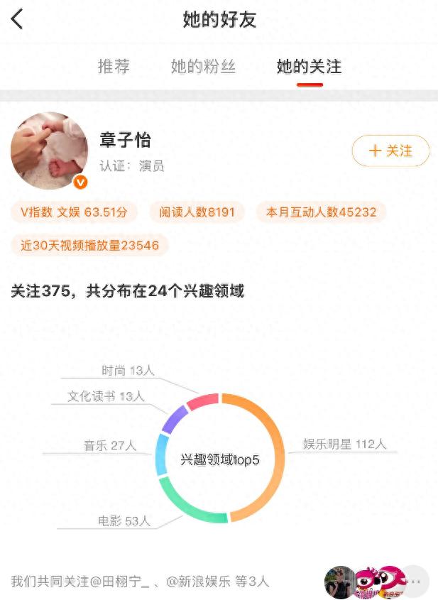 据统计,章子怡的个人微博关注列表仅375人,其中涉足影视相关领域的仅53人,其每一次对影视领域相关账号的关注,都被认为大概率暗藏后续行动与合作计划,并非随意操作。