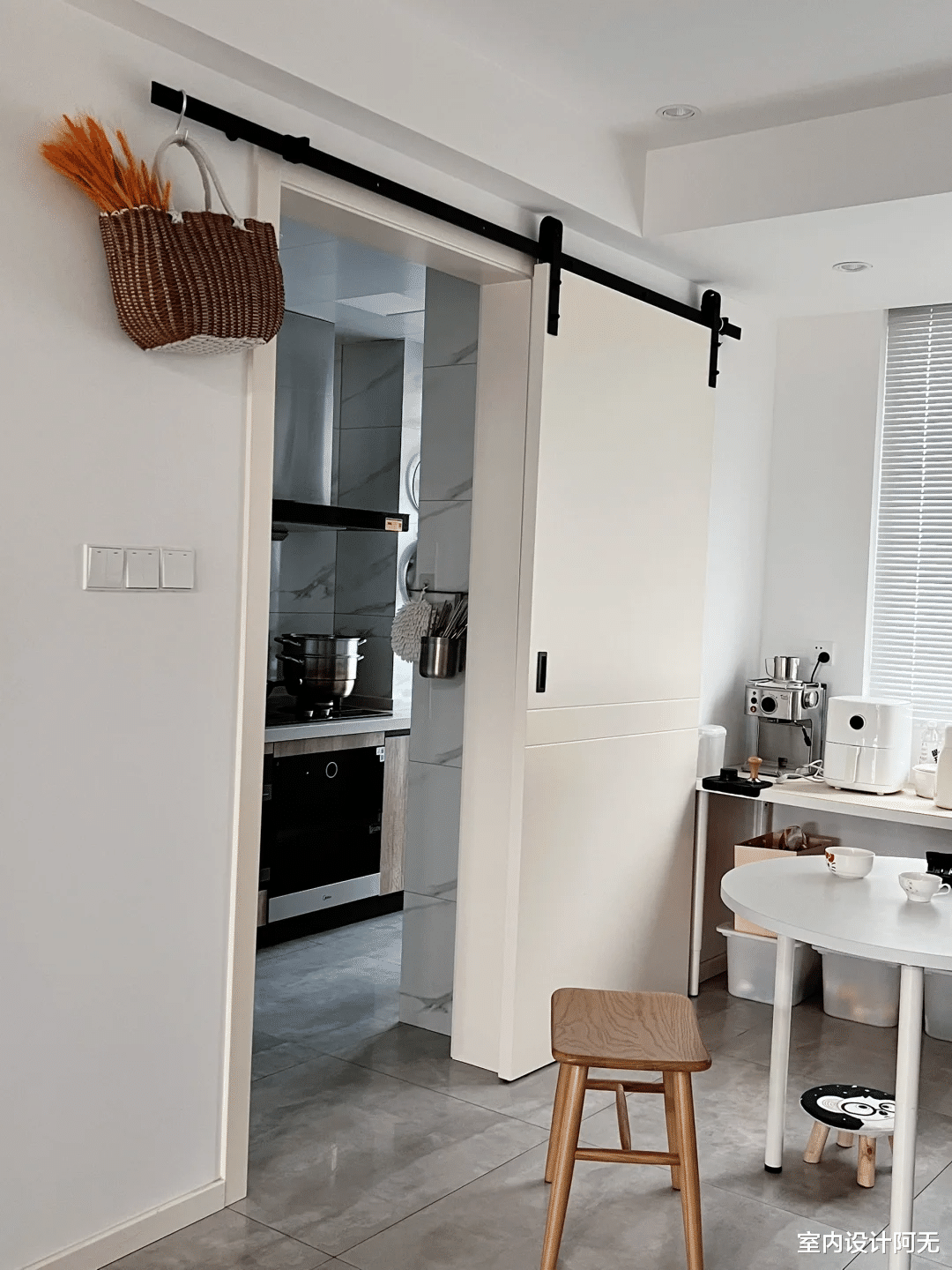 网友@平安是福 的分享:谷仓门的缝隙太大了,轨道买的贵的都不怎么好用,有一次还卡住了,差点出不来了,而且还不隔音,炒菜关着门和没关差不多少,我觉得就是一个木头做的帘子,一点都不实用。